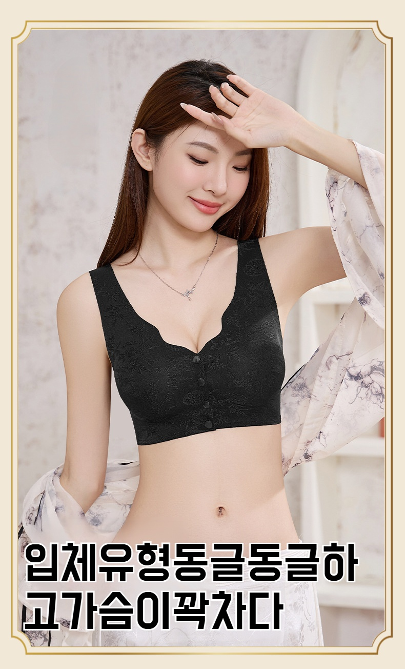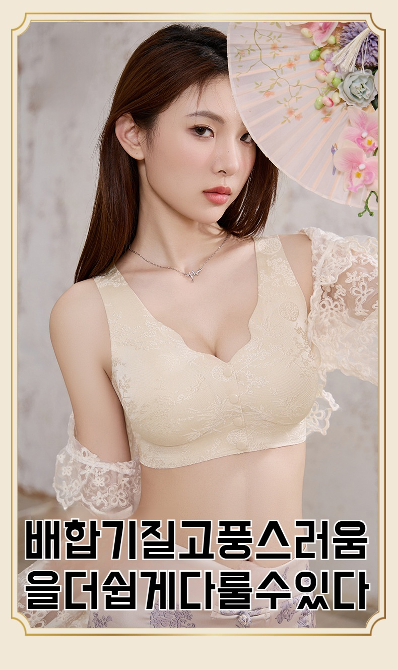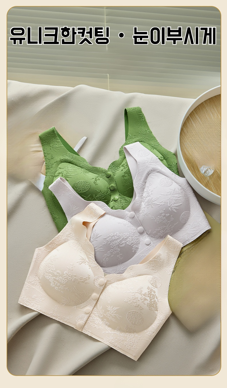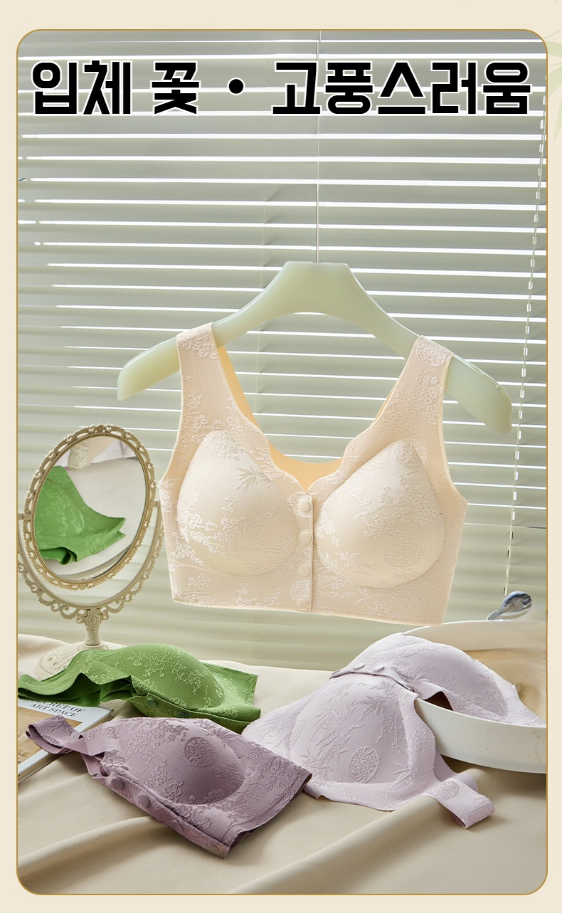 엄마 큰가슴 작은브라 부유앞단추 자카드브라 헴 노와이어 국풍앞단추브라